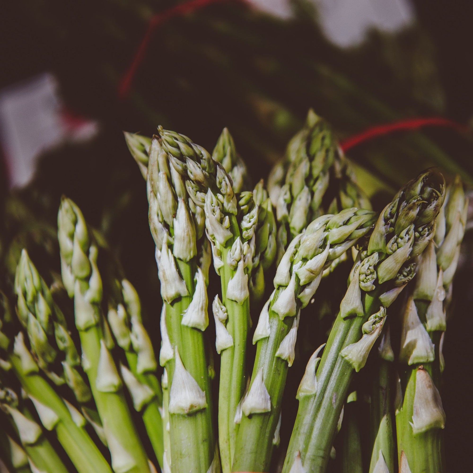 Grüner Spargel ist wie sein weißer Bruder sehr kalorienarm und besitzt ebenso die vielen tollen Eigenschaften, wie z.B. die Anregung vom Stoffwechsel, einen hohen Folsäuregehalt und eine Menge Vitamin C, sogar noch deutlich mehr als weißer Spargel. Außerdem besticht der grüne Spargel durch Vitamin A, was für eine gesunde Haut und gutes Sehen wichtig ist. Der natürliche Farbstoff Chlorophyll (auch als Blattgrün bezeichnet) sorgt für die grüne Farbe und den etwas herzhafteren, “gemüsigeren” Geschmack.