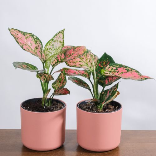 Hübsche, rosa gesprenkelte Pflanzen in rosa Töpfen