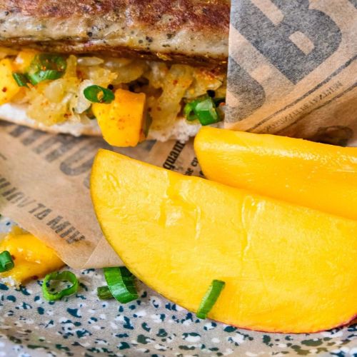 BRATWURST ALS BOSNA MIT MANGO-SAUERKRAUT