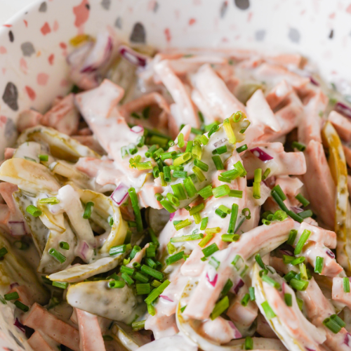 Kennst du das, wenn Dich die Lust nach einem deftigen Fleischsalat einfach nicht mehr loslässt? Dieses Rezept schmeckt einfach Jedem, ist schnell zubereitet und bringt deine Brotzeit auf ein ganz neues Level!