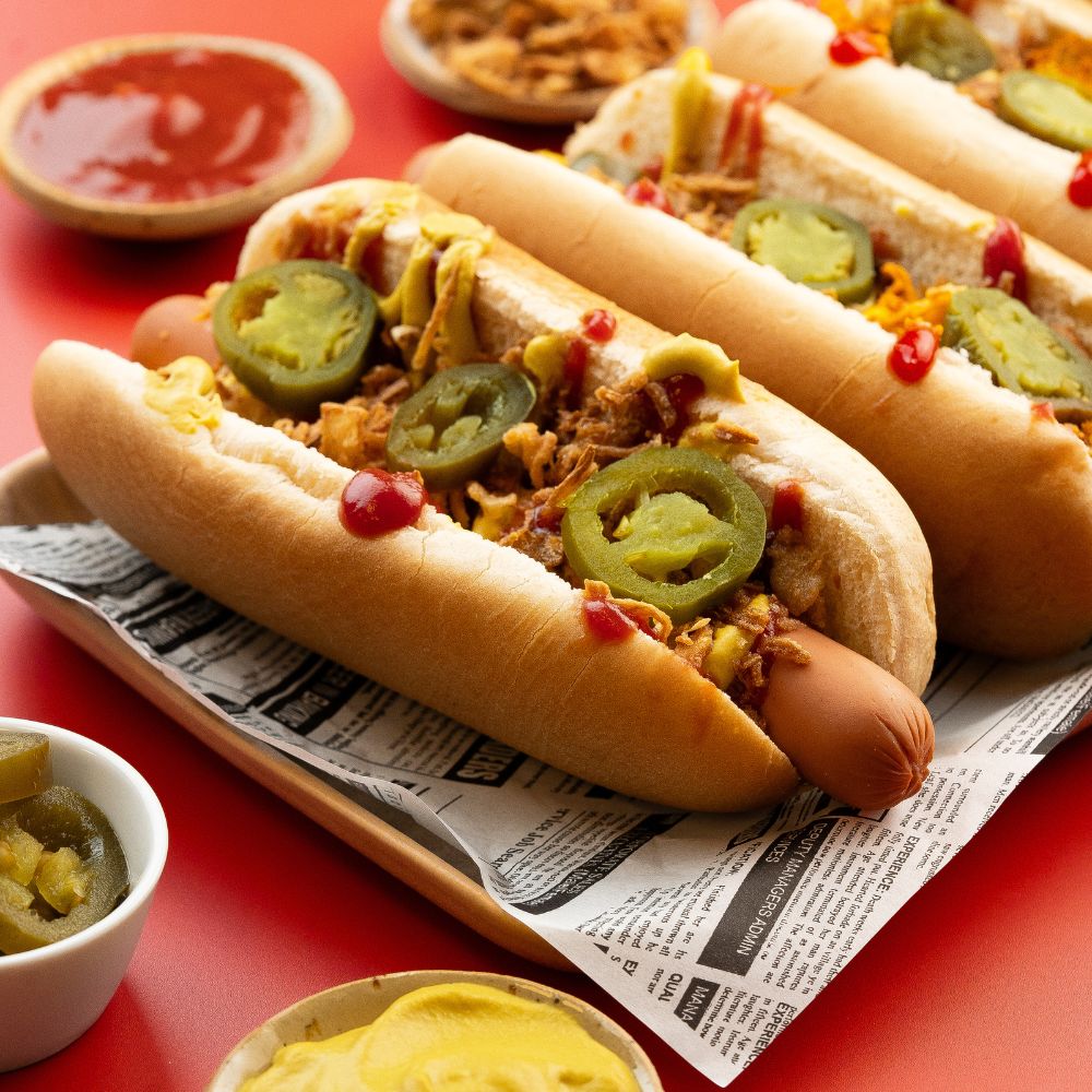 Wir haben vegane Hot Dogs für dich, die alles mitbringen, was du dir wünschst: Sie sind saftig, lecker und haben einen kleinen extra Kick! Perfekt für den schnellen Snack oder die nächste Party – tierfreundlich, vielseitig und einfach unwiderstehlich!