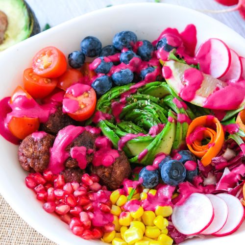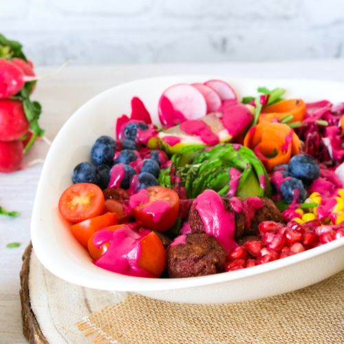 Wow, wie bunt diese leckere Bowl aussieht. Da bekommt man direkt Hunger. Wir haben eine Pride Bowl für Dich zusammengestellt, mit den Farben des Regenbogens. Sie ist ausgewogen lecker und 100% vegan. Sie eignet sich perfekt für warme Sommertage. 🌈