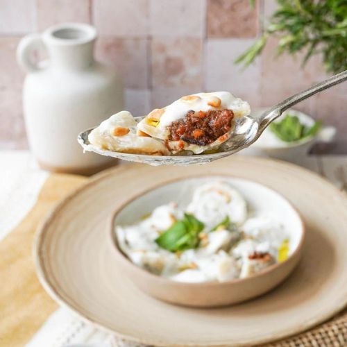 shish barak sind arabische Teigtaschen, die ähnlich wie Ravioli mit Hackfleisch gefüllt sind und in einer Joghurtsoße gekocht werden. Zum Glück gibt es unser veganes Hack, sodass Du die leckeren Teigtaschen ohne Tierleid genießen kannst.
