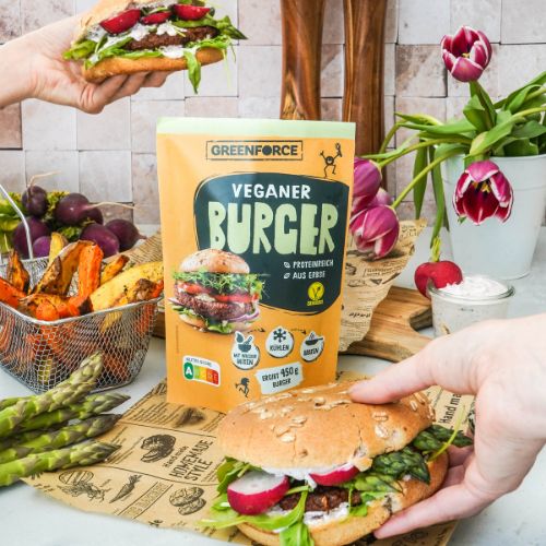 Hello Sunshine☀️: Jetzt wird es sommerlich! Unser Burger ist mit leckeren saisonalen Produkten belegt und bringt so den Sommer direkt auf Deinen Teller. Wir bestücken unseren Burger mit grünem Spargel und einer leckeren Radieschen-Creme! Das Gemüse kommt von @etepetete, ein Unternehmen, welches leckeres Bio-Obst- und Gemüse CO2-neutral und plastikfrei zu Dir nach Hause liefert. So schmeckt es gleich noch viel besser!