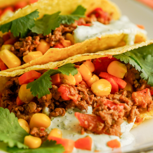 Taco-Gewürzmischung: Salz & Pfeffer, Knoblauchgranulat, Chilipulver, getrockneter Oregano, Paprikapulver