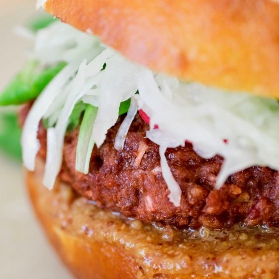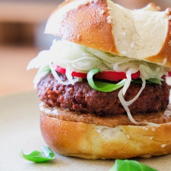 Mit diesem Burger holst Du dir ein Stück Bayern nach Hause. Mit süßem Senf, Radieschen und Krautsalat auf einem leckeren Laugenbrötchen werden die Herzen der Wiesn-Fans höher schlagen.