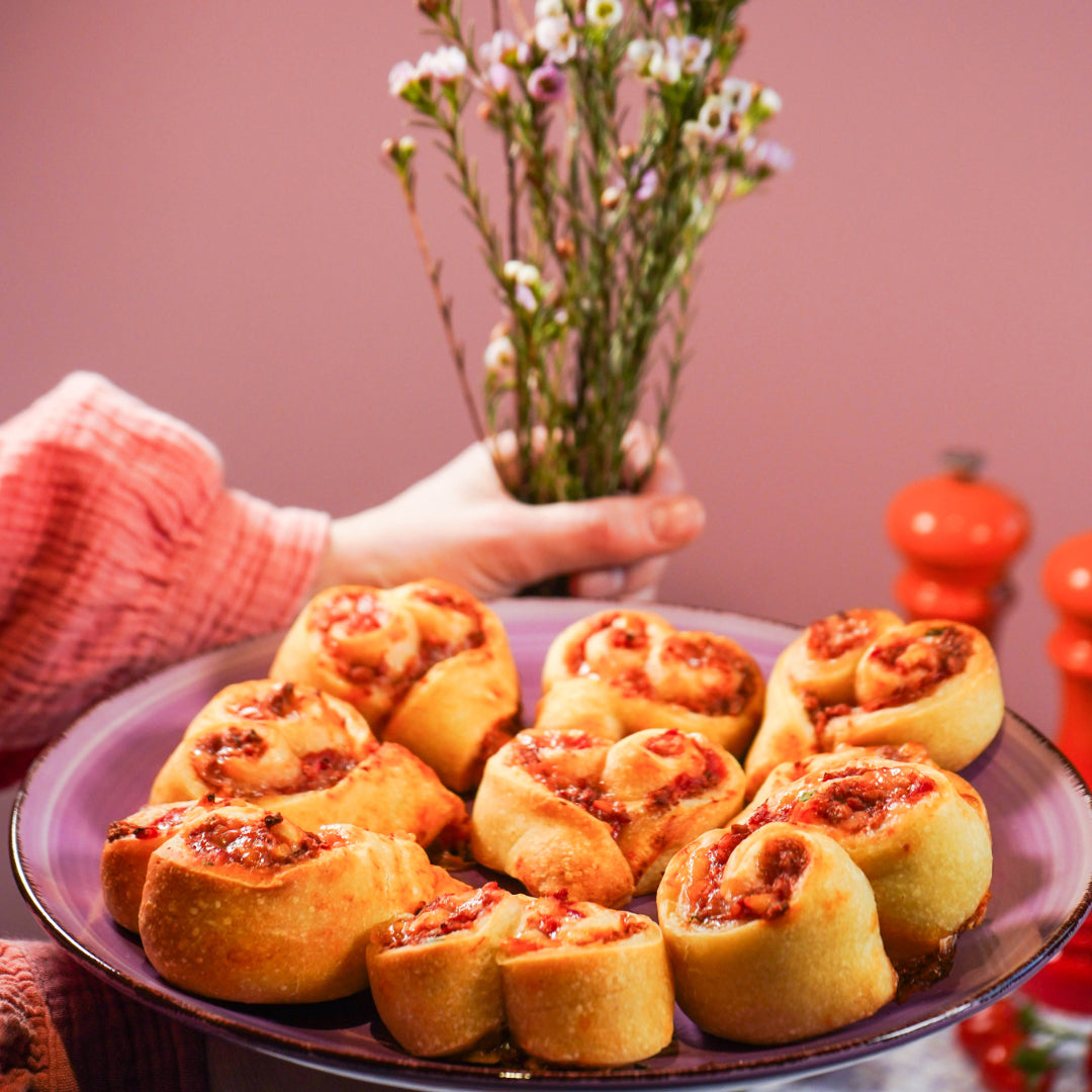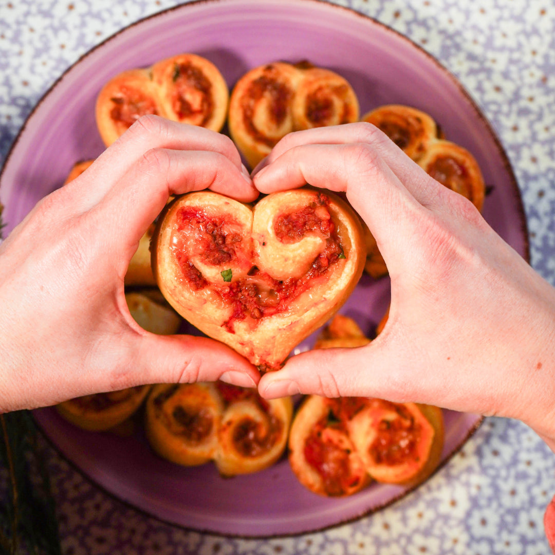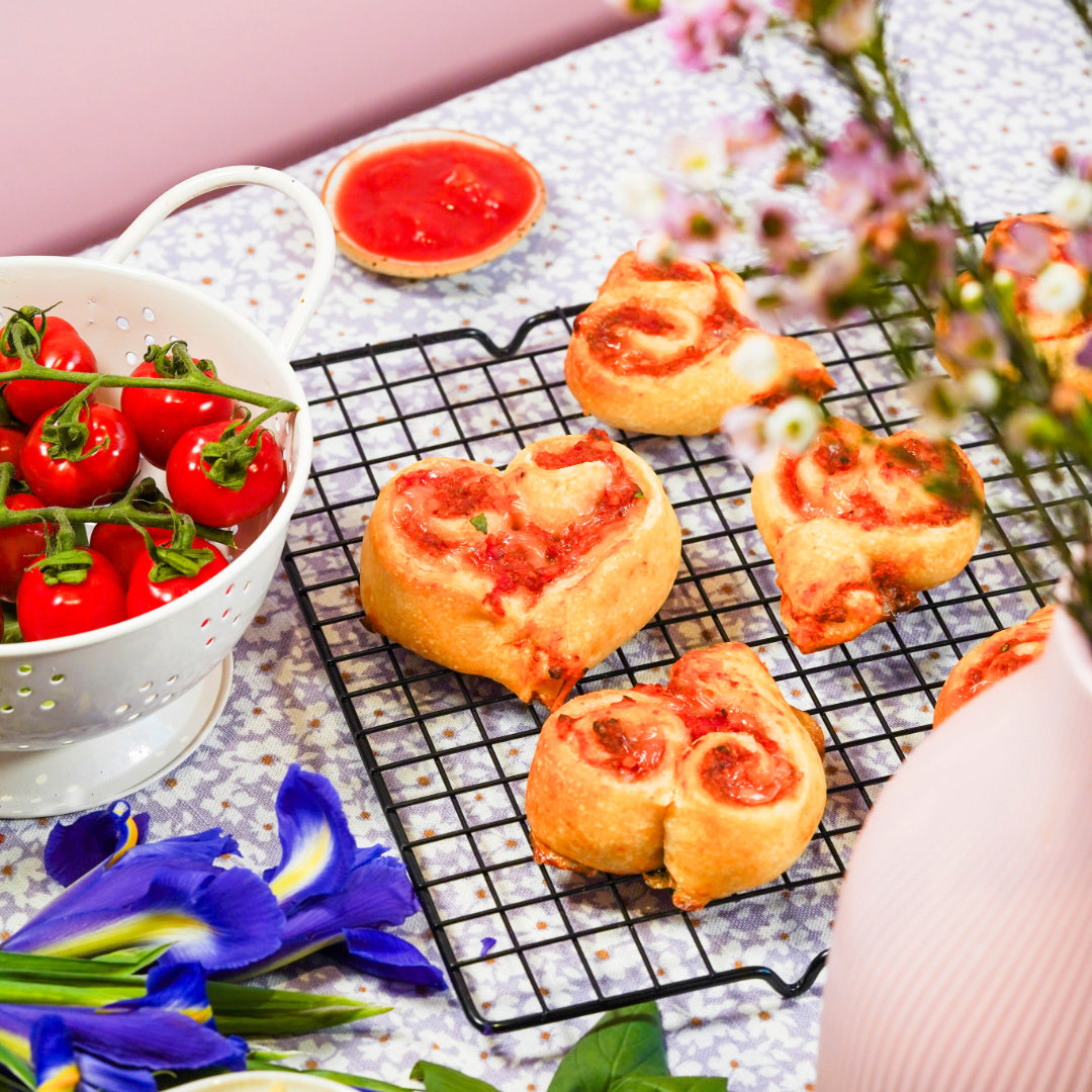 These sweet rolled heart pizzas are perfect to give to your loved ones! And the best thing: Despite the short preparation time, the hearts have a big impact - so you're guaranteed to have enough time for togetherness!