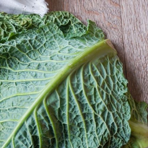 Meanwhile, wash the savoy cabbage, remove the outer leaves and cut half into four equal pieces.