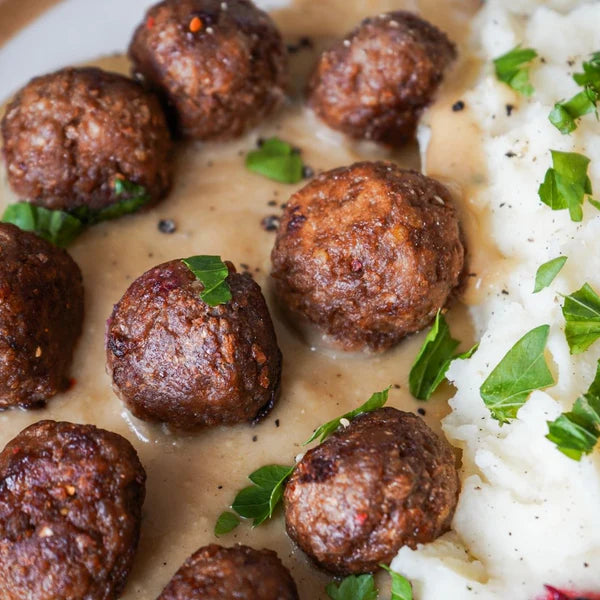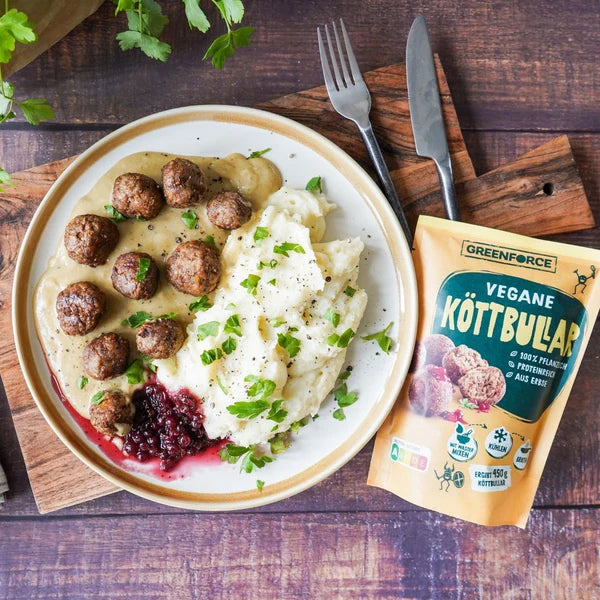Hej kompisar, sagt man in Schweden zu "Hallo Freunde". Denn mit diesem Rezept wird's nordisch. Das schwedische Nationalgericht Köttbullar gibt's jetzt auch in vegan. Ganz klassisch dazu gibt es eine deftige Rahmsoße und Kartoffelbrei.