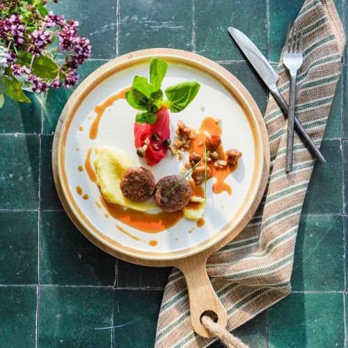 Together with our partners from WIBERG, we cooked this delicious meatball recipe in our content kitchen. They are served with a beetroot and potato puree, fresh mushrooms and our vegan gravy. Sooooo good!