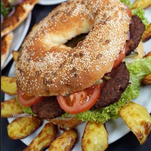 Have you ever seen a burger like this? Here, a sesame ring is used as a burger bun and topped with several patties at once. Wow, that's good! The recipe was provided to us by @umihito. Thank you very much 🥰