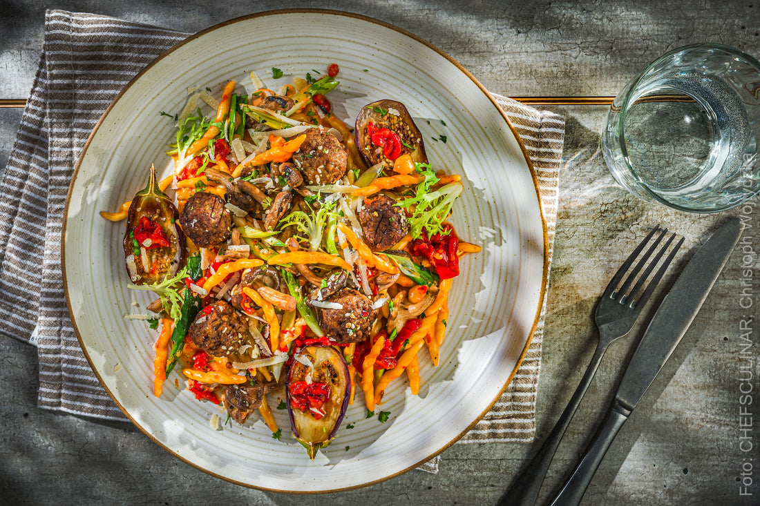 This vegan masterpiece combines the sweet smoky notes of grilled peppers with the tender texture of eggplant and the savory flavors of mushroom dumplings. Ideal for a special dinner or a great occasion - this recipe from @chefsculinar will delight you and your guests alike!