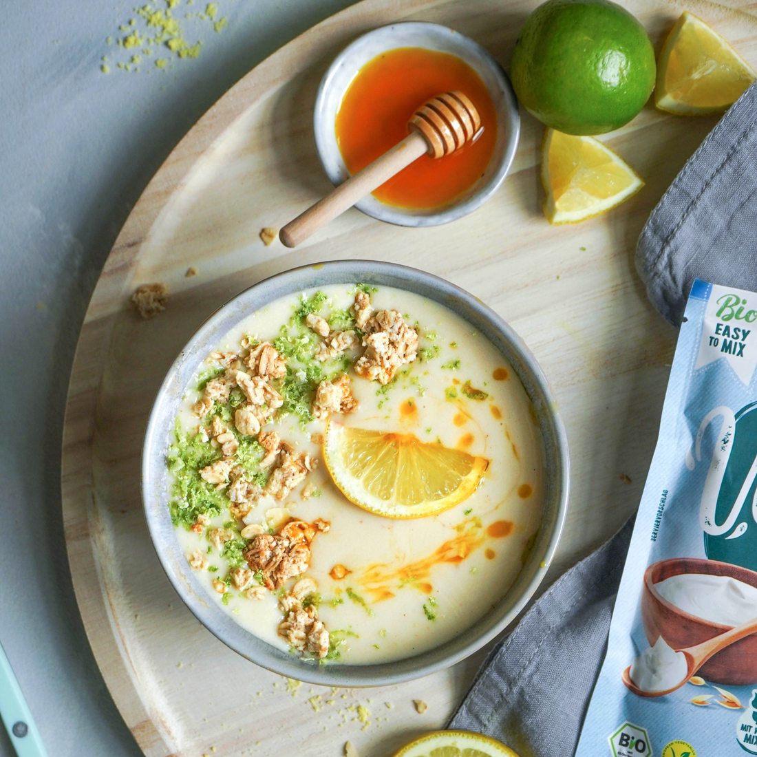 • Veganer Frühstücksburger mit Frischkäse, Avocado und Ei