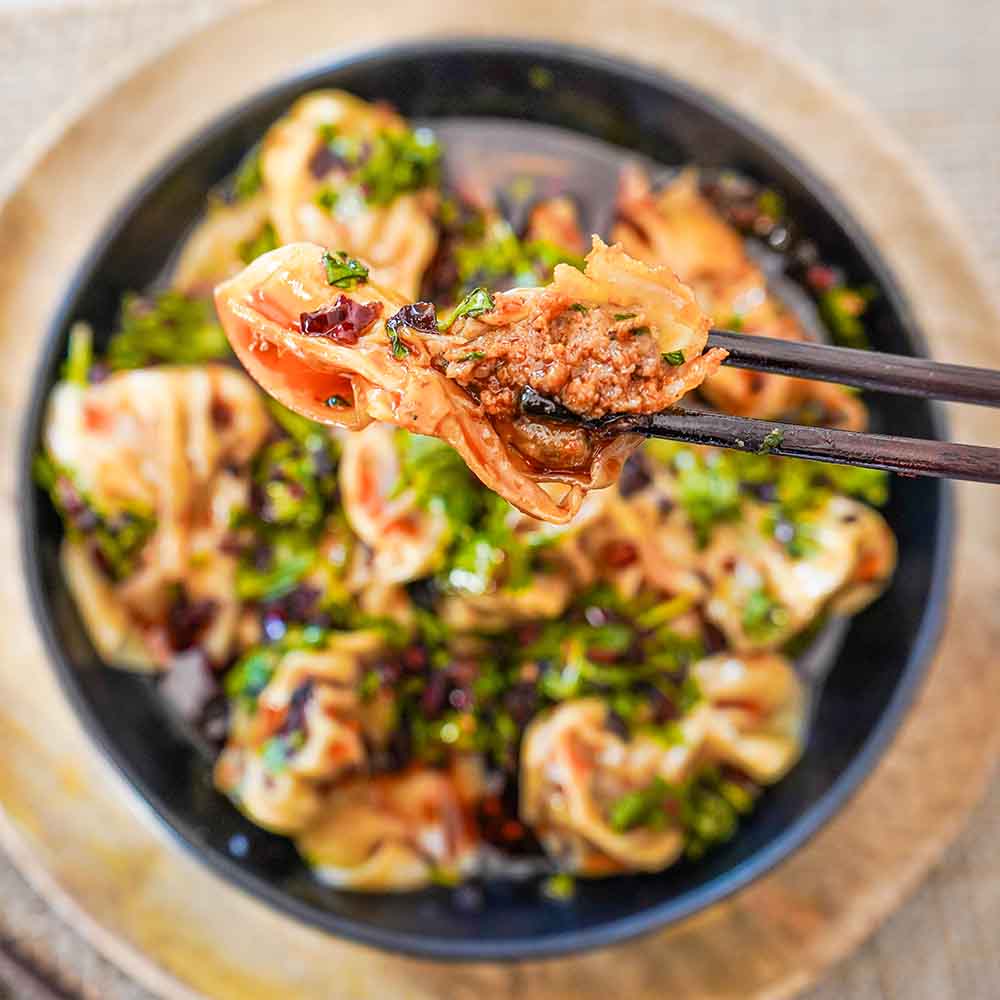 Entdecke hier das Rezept für vegane Wan Tan in Chiliöl - gemacht aus den veganen Frikadellen.