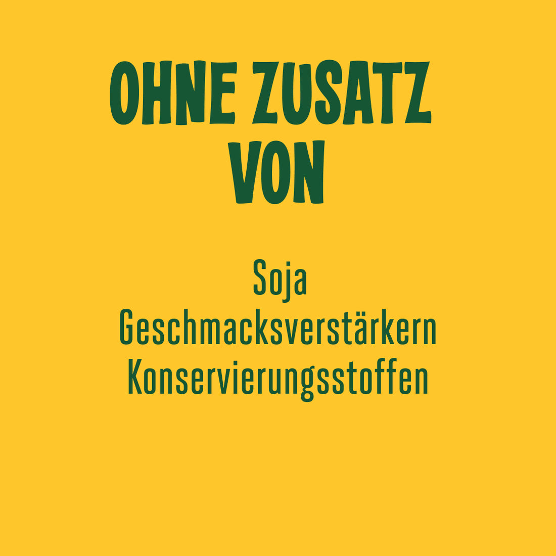 •  Ohne Zusätze von Soja, Geschmacksverstärkern, Konservierungsstoffen, Palm-/ Kokosfett, Modifizierter Stärke
