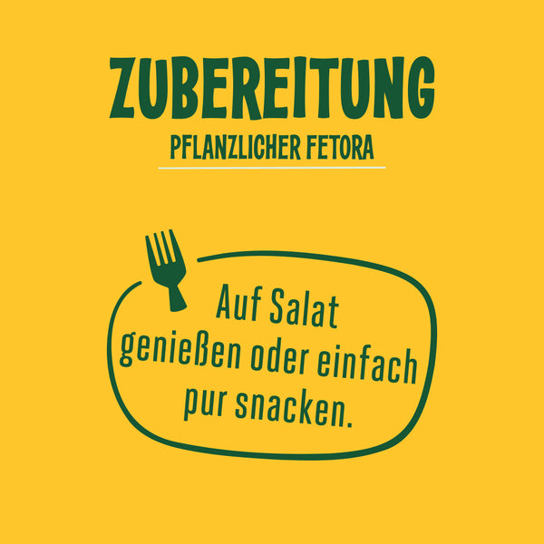 Der pflanzliche Fetora ist mehr als nur eine Käsealternative – er ist ein Gefühl von Sommer, Leichtigkeit und purer Geschmacksexplosion. Selbst in kalten Monaten lässt er von der griechischen Sonne träumen. Cremig, mild-salzig und perfekt zum Verfeinern, Verlieben und Verschenken an Deine Geschmacksknospen. 💚